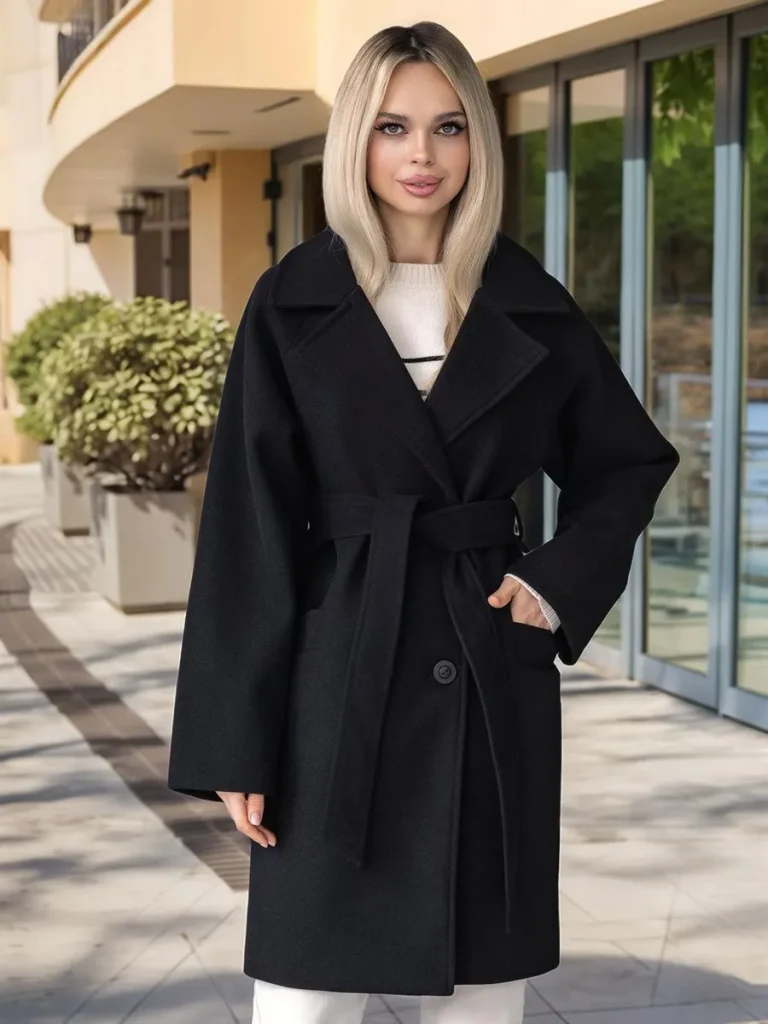 Еще одно преимущество данного пальто — его посадка. Разработанное с учетом анатомии женского тела, оно подчеркивает линии фигуры и создает аккуратный силуэт. Наличие пояска в комплекте позволяет акцентировать талию, делая образ более женственным и элегантным.
